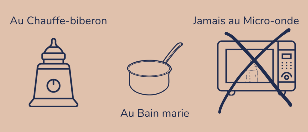 – Réchauffez votre lait au bain marie ou au chauffe biberon.